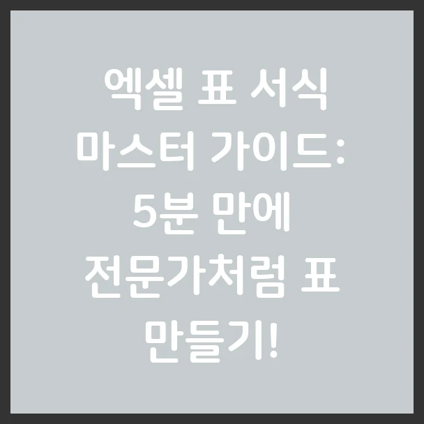 🚀 엑셀 표 서식 마스터 가이드: 5분 만에 전문가처럼 표 만들기!